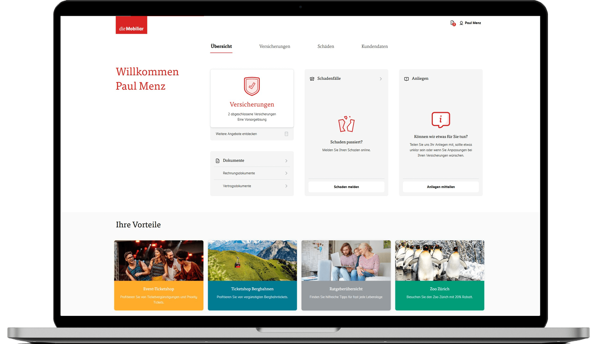 Das Mobiliar Kundenportal bietet Ihnen spannende Angebote und nützliche Services. So behalten Sie papierlos und jederzeit den Überblick über Ihre Versicherungsdokumente und Schäden.