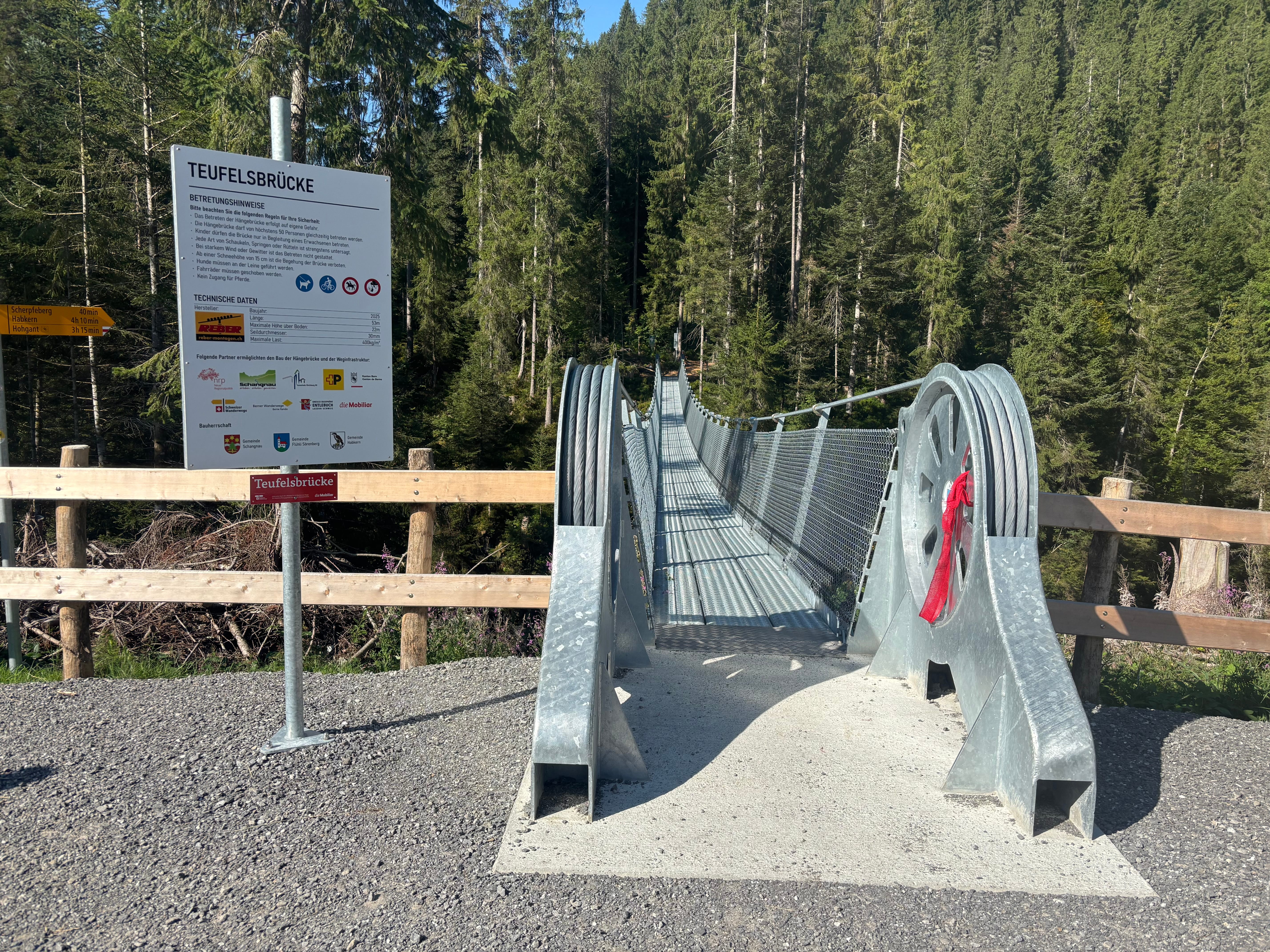 Freitag, 15. August 2025Dank dem Engagement und finanzieller Unterstützung von Partnerinnen und Partnern konnte die Gemeinden Schangnau, Flühli und Habkern im Gebiet des Kemmeribodenbades zwei zerstörte Fussgängerbrücken durch neue Hängebrücken ersetzen.